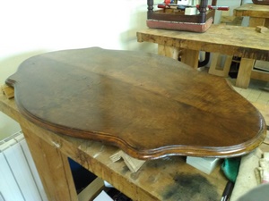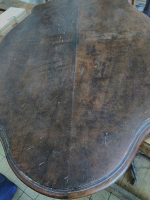 Guéridon avant et après (nettoyage puis vernis au tampon)